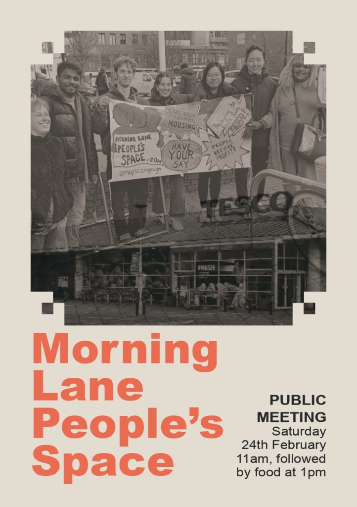 Morning Lane People’s Space has organised a meeting about the Tesco site, to talk about how we can be involved in decision making and to hear what Co-Design could be from those already involved in similar projects. Come along to learn more and join the discussions.